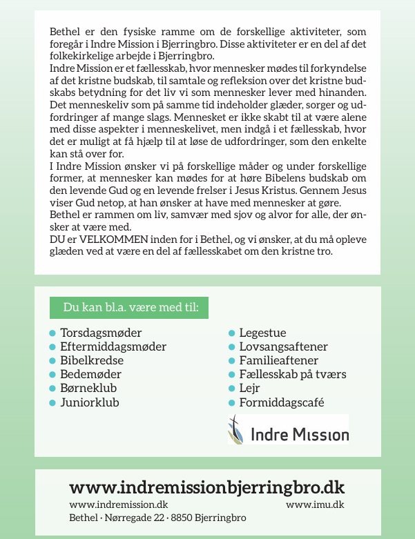Kontakter, Kontonr. og MobilePay, Informationer, Samtale og Omsorg